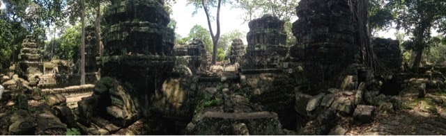 Last days visiting the temples!! I could have gone to the ones far away, but is preferred to see the sunrise in Angkor Wat and so stay in the central temples!! I woke up early in the morning, I was pedaling at 5.15 am, and finished after noon as I was exhausted and I had already seen everything I wanted to see!!! I finished with a nap in front of Angkor Wat!! The good thing that in hype morning there are less clouds and the light is much better for better pictures!!! So many of the pictures are from temples already seen, I just had a couple unseen!! At the Tomb Raider temple (Ta Phrom) a guy, who I ended paying a dollar, took me to the top, supposedly not allowed!! Spectacular view!!!